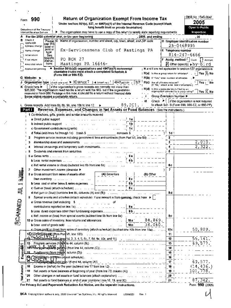No 15450047Return of Organization Exempt From Income Tax1Form 9902005Under section 501(c), 527, or 4947(a)(1) of the Internal Revenue Code (except black lung benefit trust or private foundation)Department
