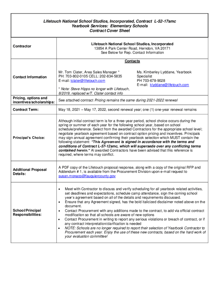 Get the free School Photographic Services Contract Cover Sheet ...