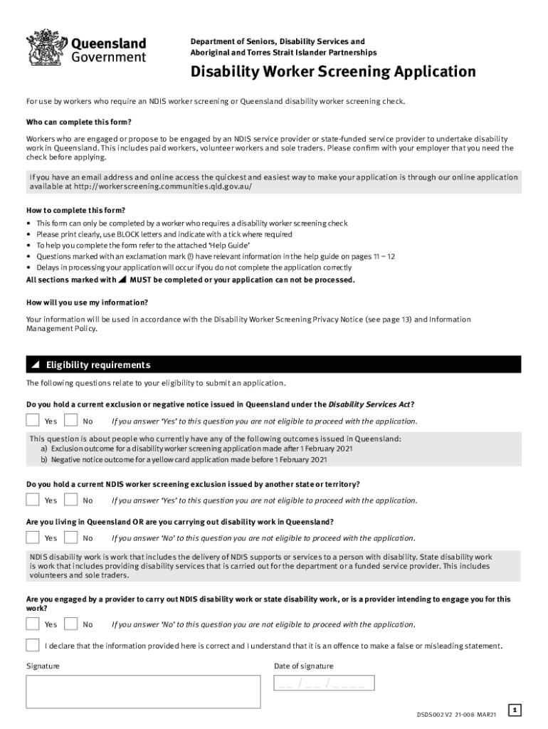 Aboriginal and Torres Strait Islander PartnershipsDisability Worker Screening Application