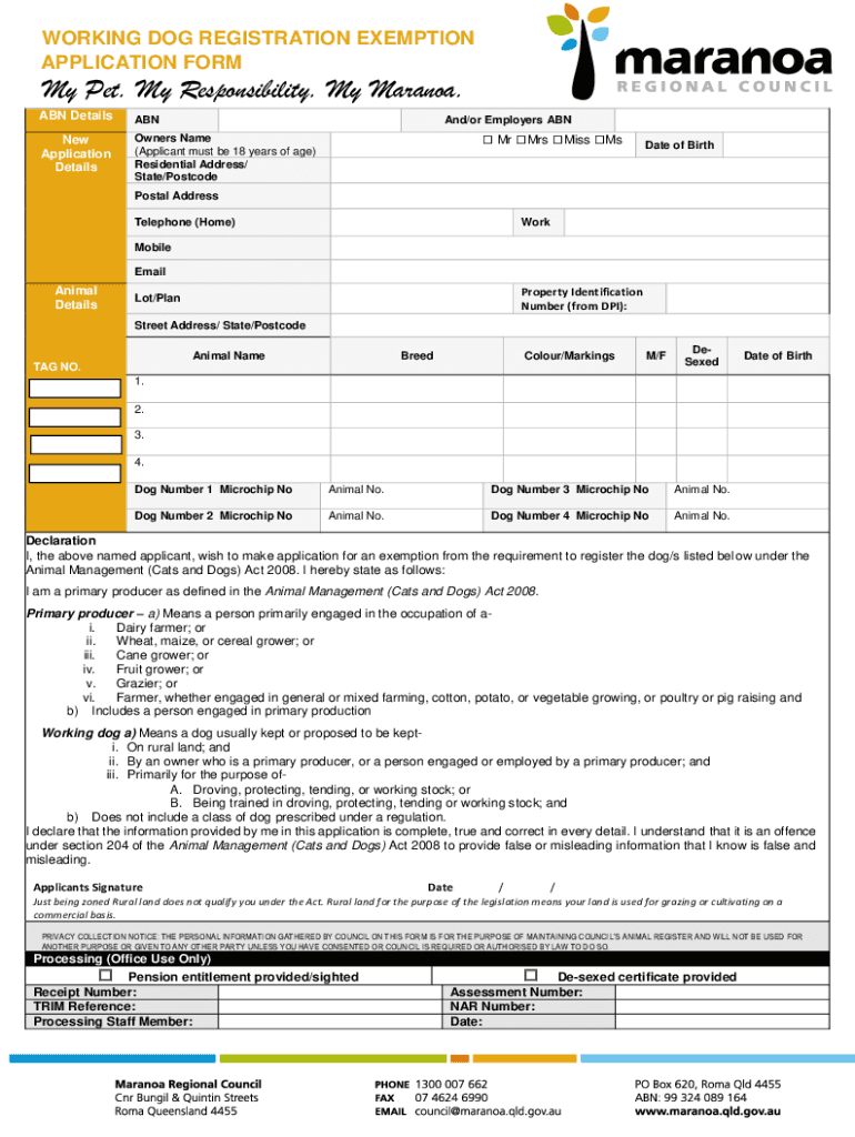 WORKING DOG REGISTRATION EXEMPTION