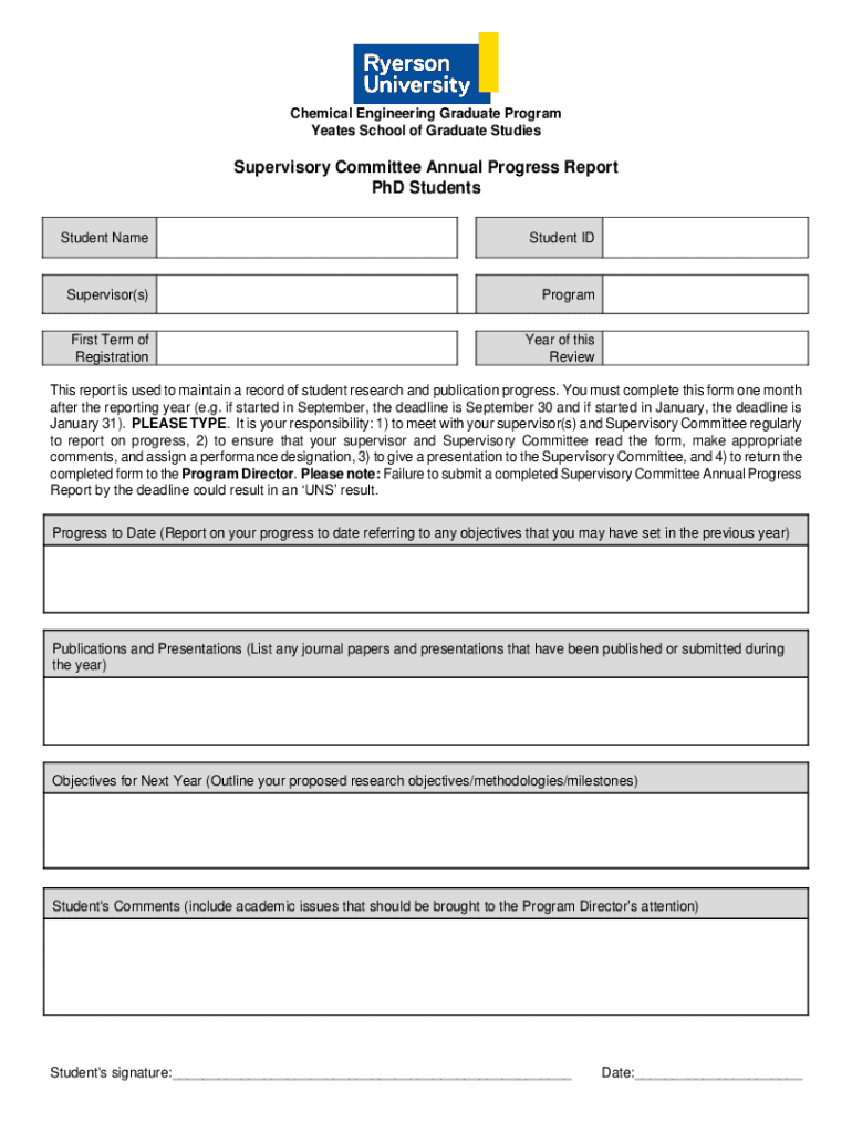 Yates School of Graduate StudiesSupervisory Committee Annual Progress Report
