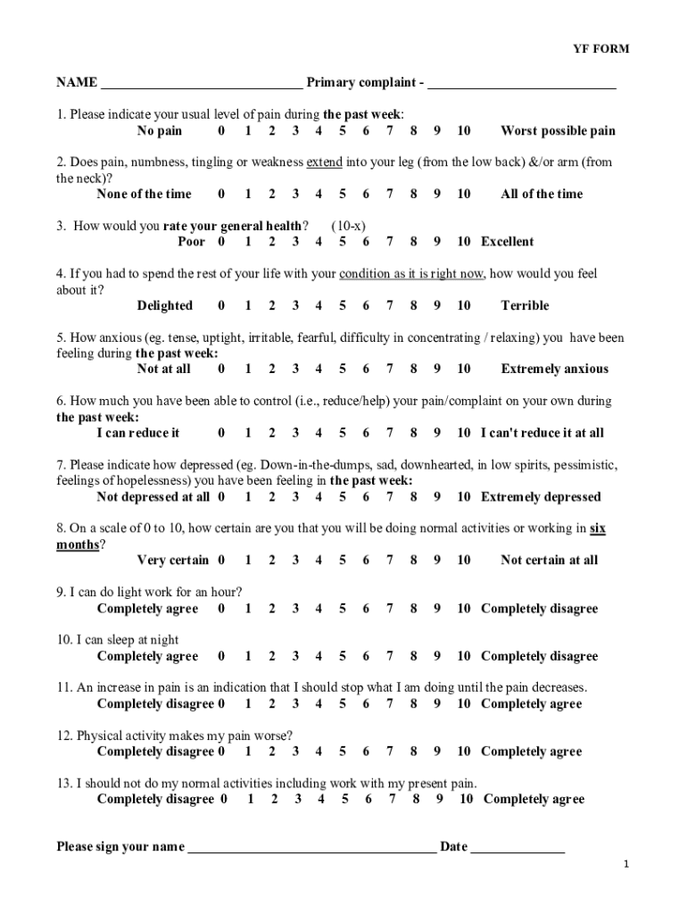 Get the free NAME Primary complaint - the past week No pain 0 1 2 3 4 5 ...