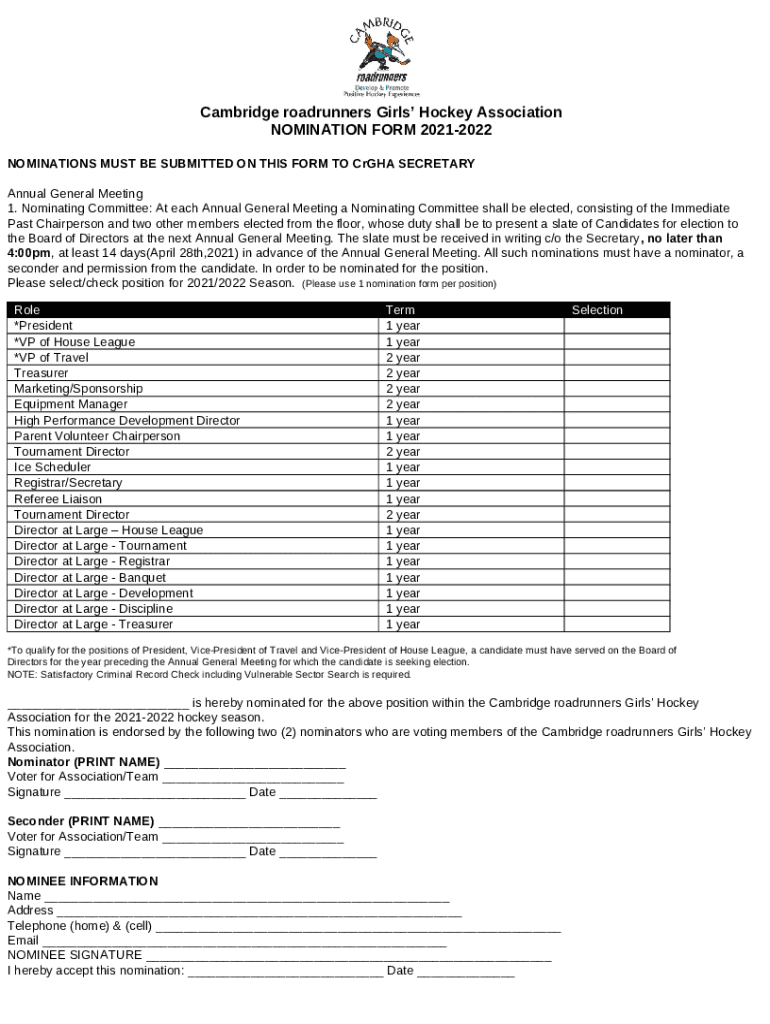 The News - Cambridge roadrunners Girls' Hockey Association is a Word document that can be completed and signed for certain purpose. Then, it is provided to the relevant addressee in order to provide specific details of any kinds. The completion and signing may be done manually or via an appropriate tool e. g. PDFfiller. Such applications help to fill out any PDF or Word file online. It also lets you edit it according to your needs and put a valid electronic signature. Once you're good, the user sends the News - Cambridge roadrunners Girls' Hockey Association to the recipient or several ones by mail and even fax. PDFfiller offers a feature and options that make your blank printable. It offers different settings when printing out. It does no matter how you'll file a form after filling it out - physically or by email - it will always look professional and clear. To not to create a new file from the beginning over and over, turn the original document as a template. After that, you will have a rewritable sample.