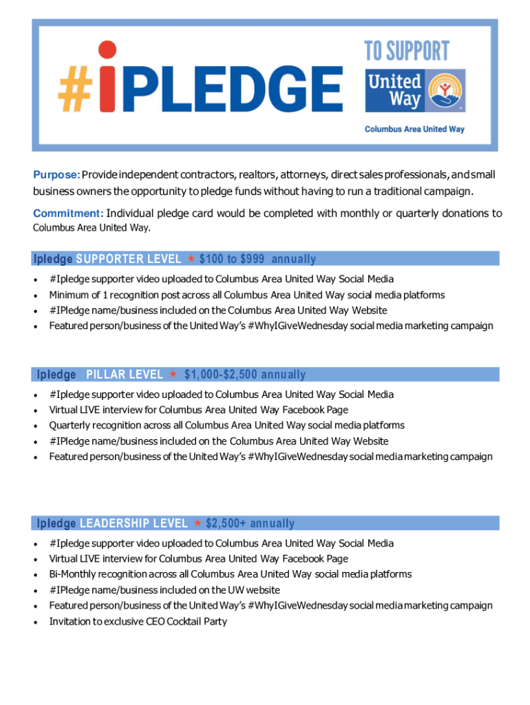 Get the free Ipledge SUPPORTER LEVEL $100 to $999 annually $1,000-$2,500 ...