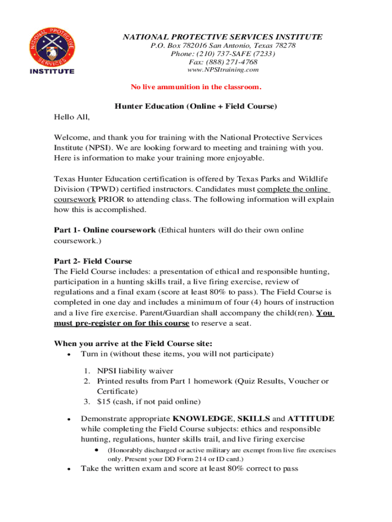 www.NPSItraining.comNo live ammunition in the classroom. Hunter Education