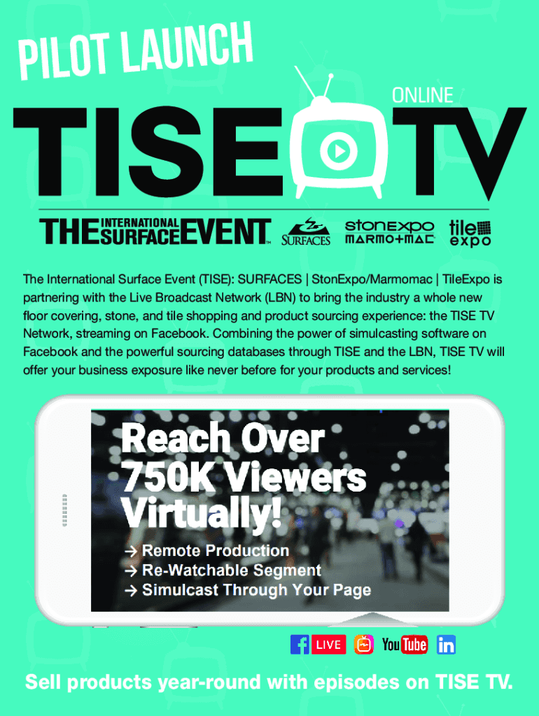 H C N U A L T PILOT he International Surface Event (TIME): SURFACES Stone/Harmonic TileExpo is partnering with the Live Broadcast Network (LBN) to bring the industry a whole new floor covering, stone,