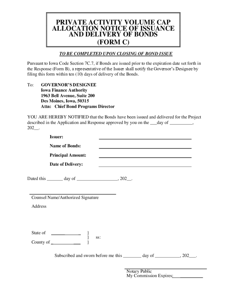 Pursuant to Iowa Code Section 7C.7, if Bonds are issued prior to