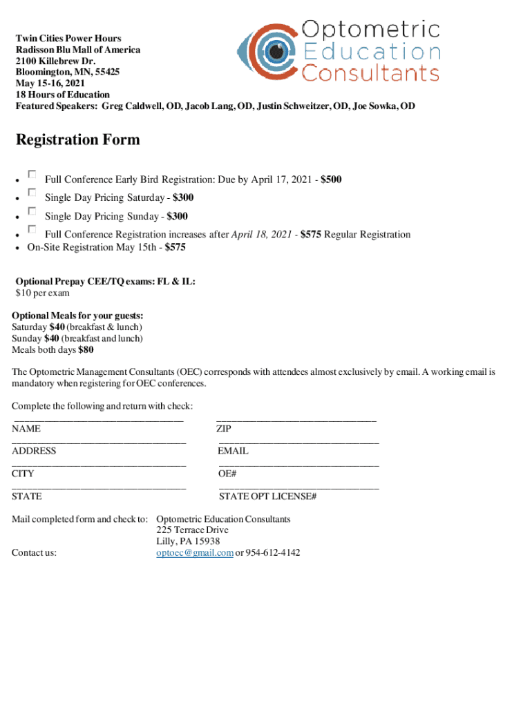 Get the free Registration Form - Optometric Education Consultants
