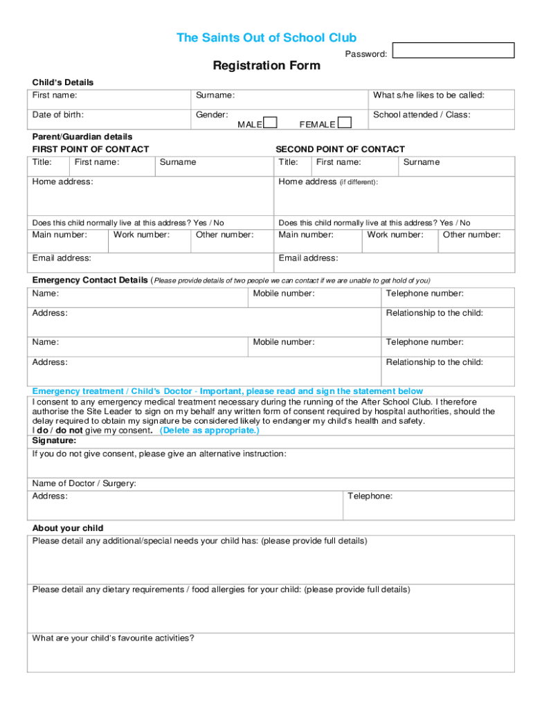 First name:Surname:Date of birth:Gender:What s/he likes to be called: