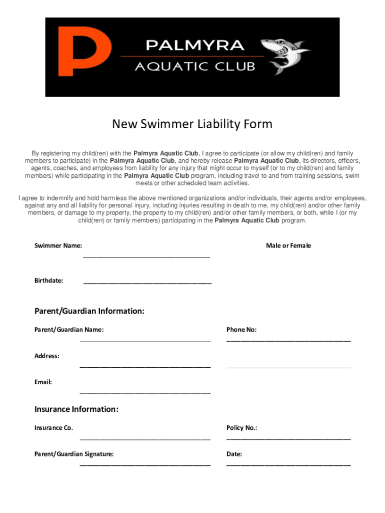 New Swimmer Liability Form