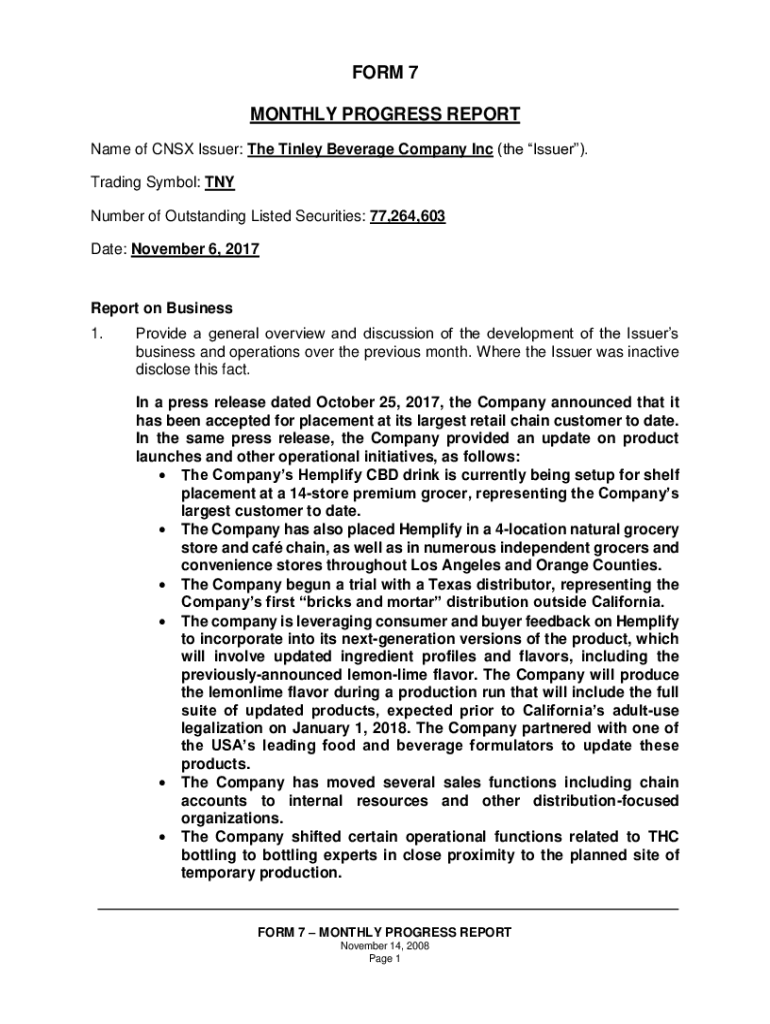 Date: November 6, 2017Report