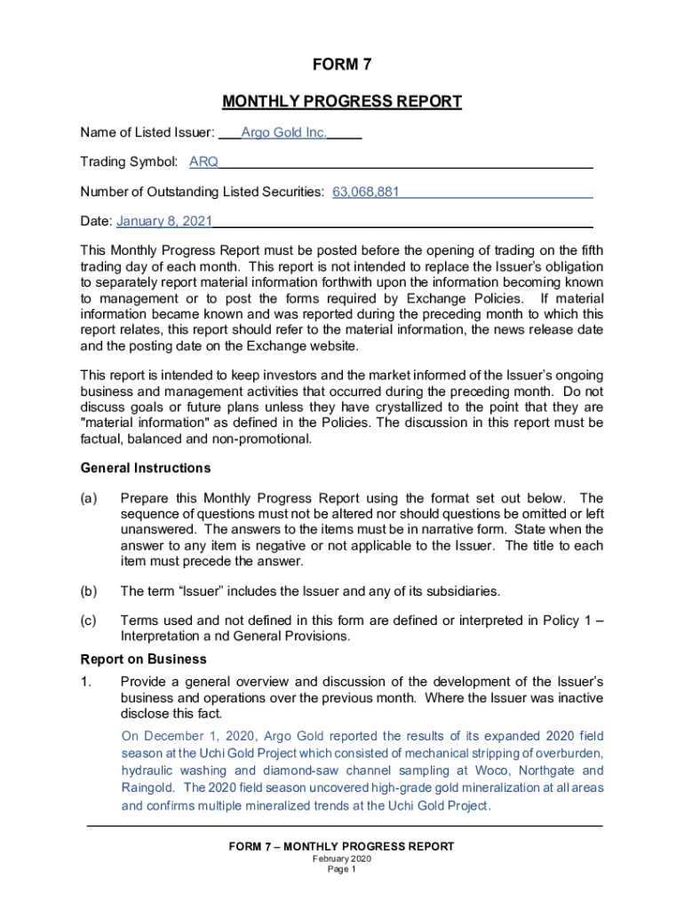 Name of Listed Issuer:Argo Gold Inc. Trading Symbol: ARQ