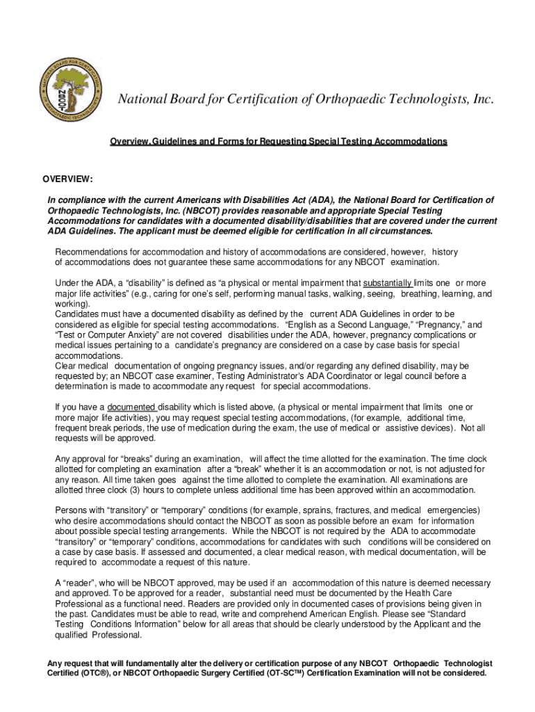 Overview, Guidelines and Forms for Requesting Special Testing AccommodationsOVERVIEW:
