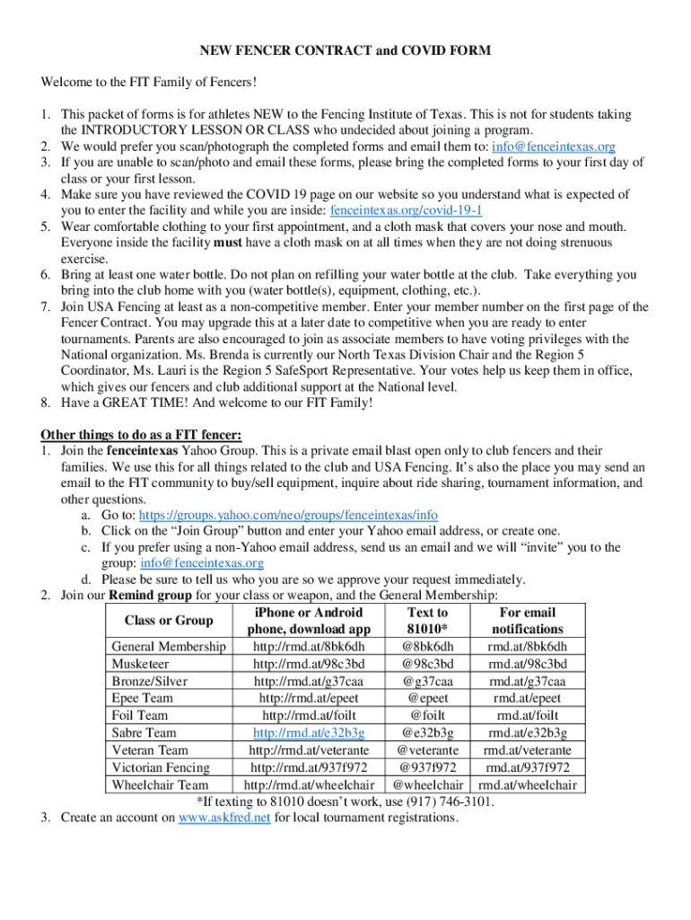 Get the free NEW FENCER CONTRACT and COVID FORM