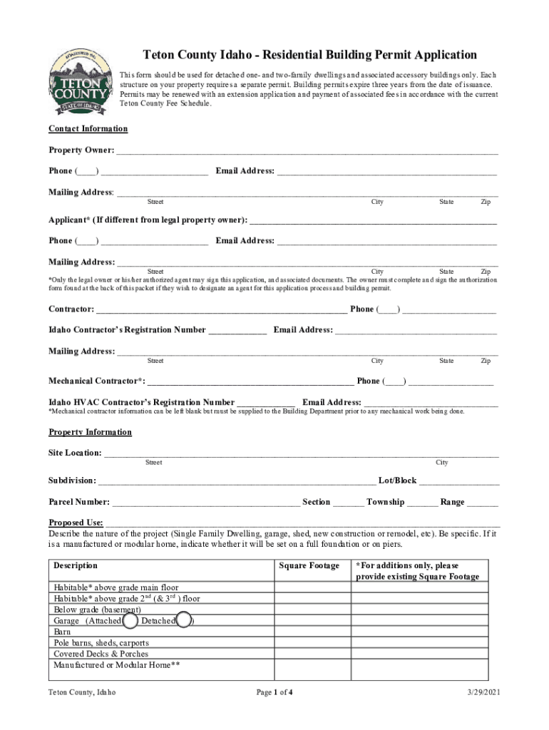 Eton County Idaho Residential Building Permit Application This form should be used for detached one and two family dwellings and associated accessory buildings only. Each structure on your property