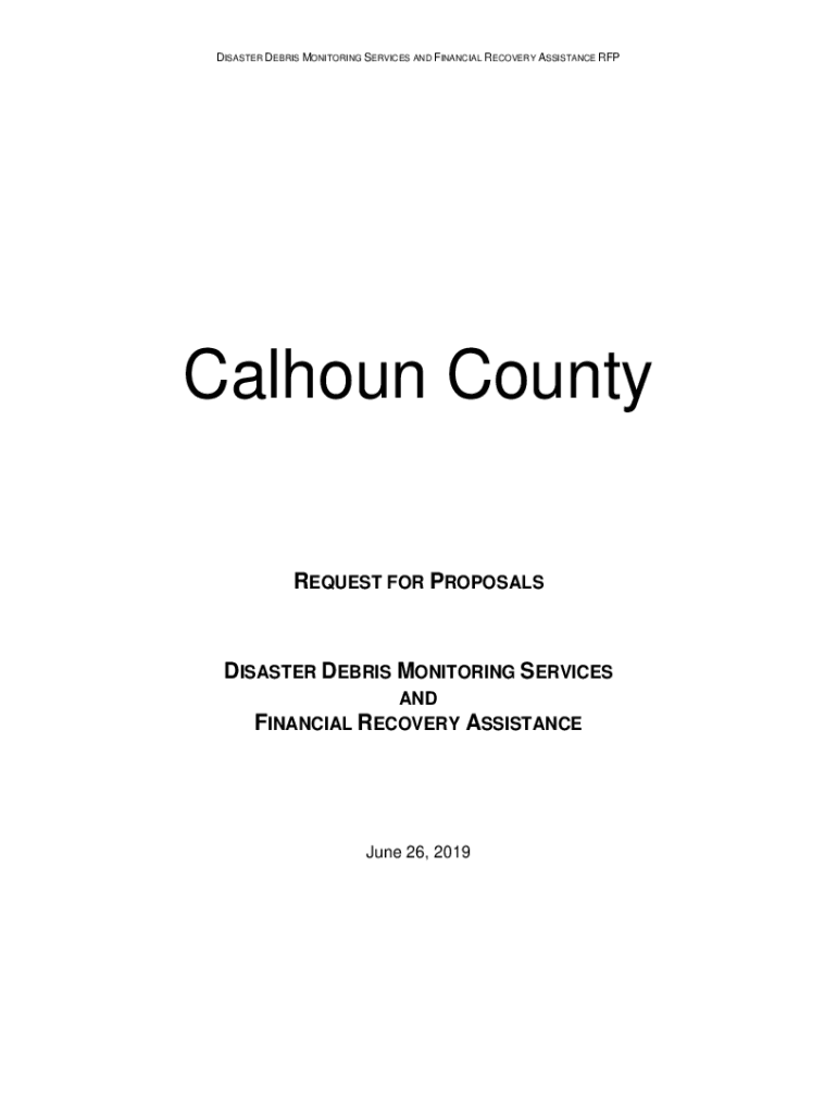 DISASTER DEBRIS MONITORING SERVICES AND FINANCIAL RECOVERY ASSISTANCE RFP Calhoun County
