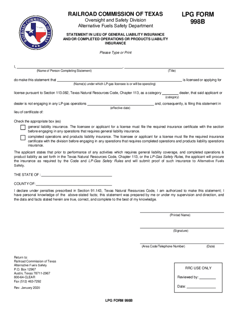 Get the free LPG Form 998B