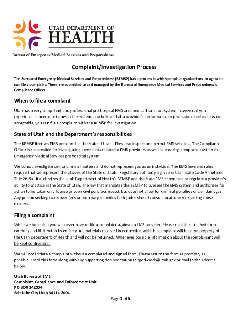Get the free NEW YORK STATE DEPARTMENT OF HEALTH EMS Complaint Form ...Complaints - Province of B...