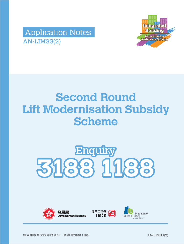 Application Notes ANIMUS(2)Second Round Lift Modernization Subsidy Scheme Enquiry3188 1188 3188 1188ANLIMSS(2)ANIMUS(2) Introduction The Government has partnered with the Urban Renewal Authority (URA)