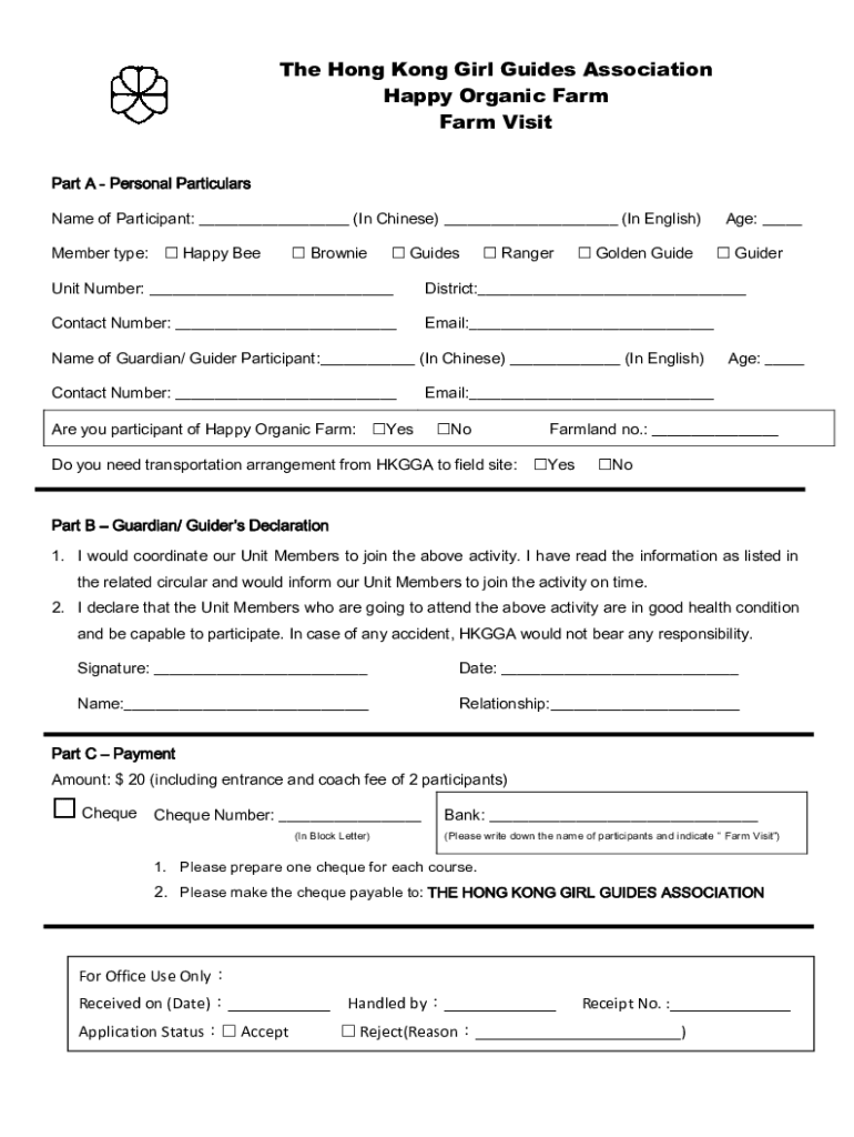 The Hong Kong Girl Guides Association Happy Organic Farm Visit Part A Personal Particulars Name of Participant: (In Chinese) (In English) Member type: Happy Bee Brownie Guides Ranger Golden Footage:
