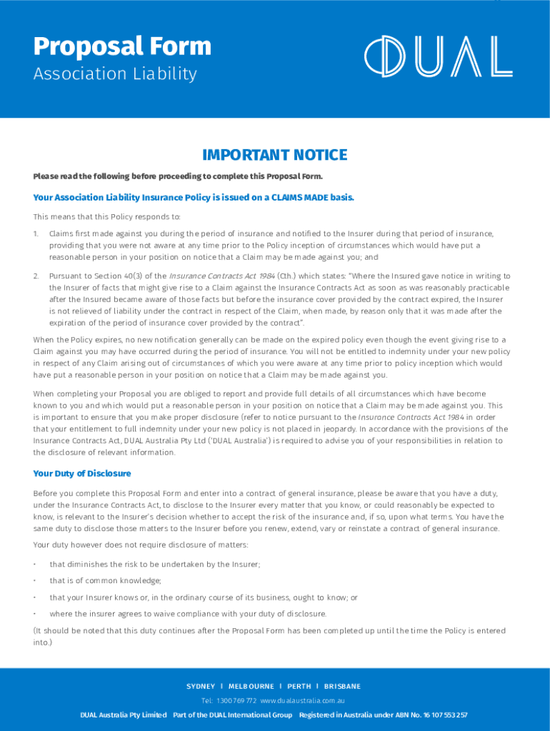Proposal Form1Association LiabilityIMPORTANT NOTICE