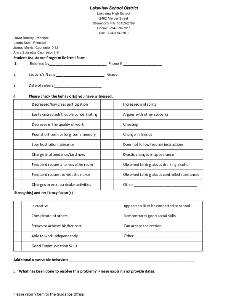 Lake view School District David Blakely, Principal Laurie Scott, Principal James Morris, Counselor 912 Alicia Cigarette, Counselor 69Lakeview High School 2482 Mercer Street Stonework, PA 161532799