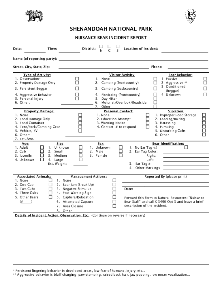 Individuals who have encountered bears and wish to report the incident for documentation purposes or to alert the authorities may also need to fill out a bear incident management report.