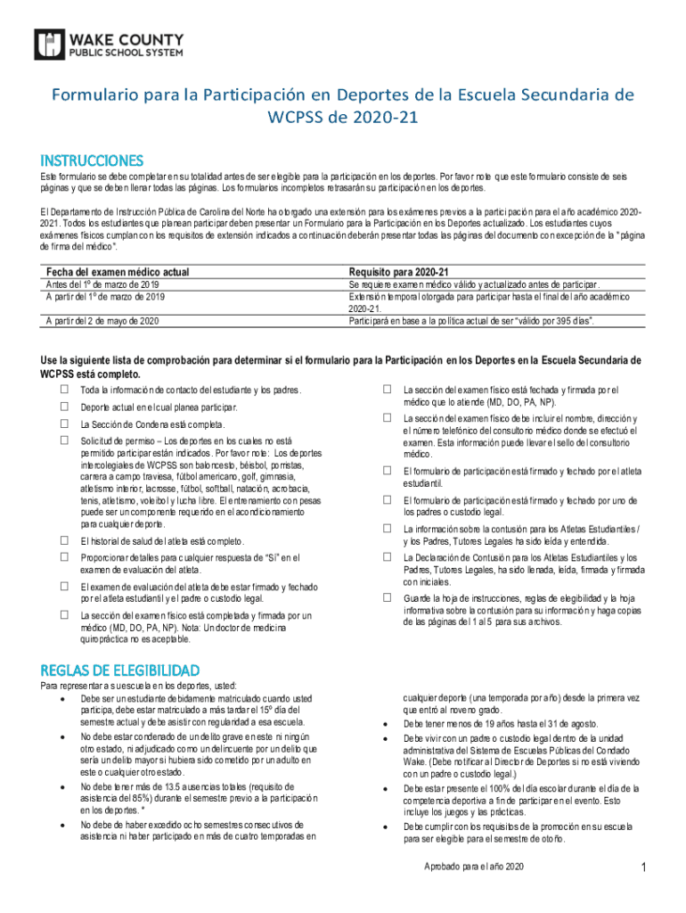 Get the free Examen previo a la participacin en deportes en la escuela ...