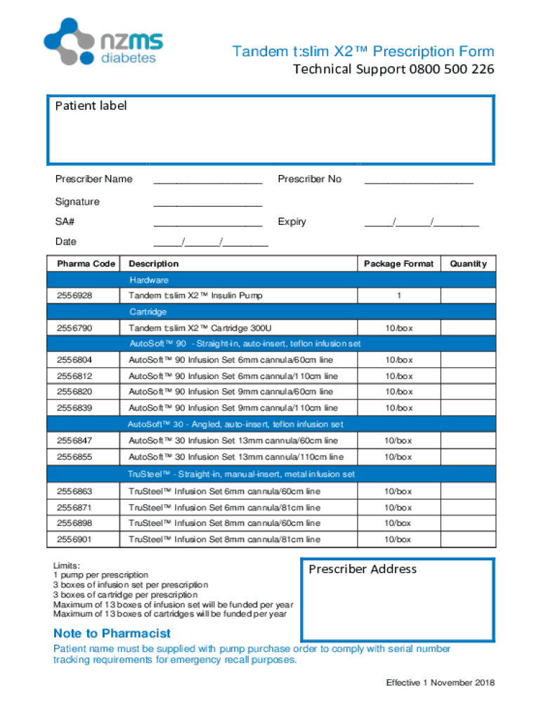 Get the free Tandem t:slim X2 Prescription Form ... - nzmsdiabetes.co.nz