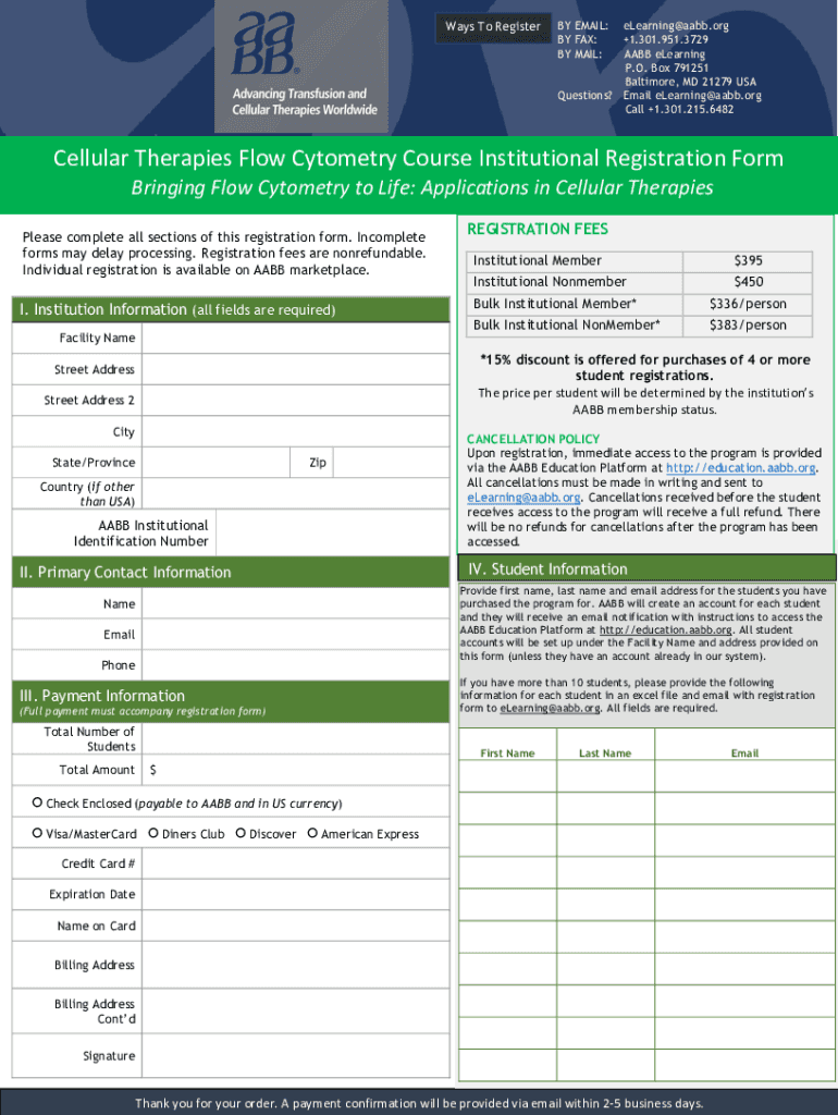 Get the free Bringing Flow Cytometry To Life - Instituttional Registration Form