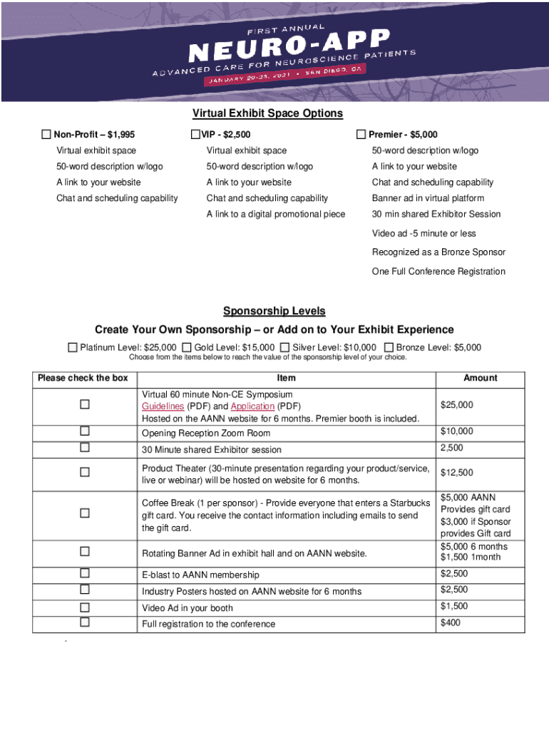 Virtual Exhibit Space Options Nonprofit $1,995VIP $2,500Premier $5,000Virtual exhibit spaceVirtual exhibit space50word description w/logo50word description w/logo50word description w/logo link to