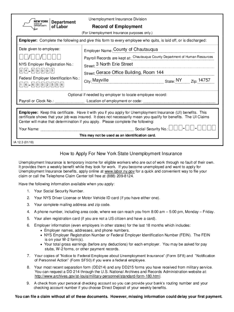 Unemployment Insurance DivisionRecord of Employment (For Unemployment Insurance purposes only.) Employer: Complete the following and give this form to every employee who quits, is laid off, or is
