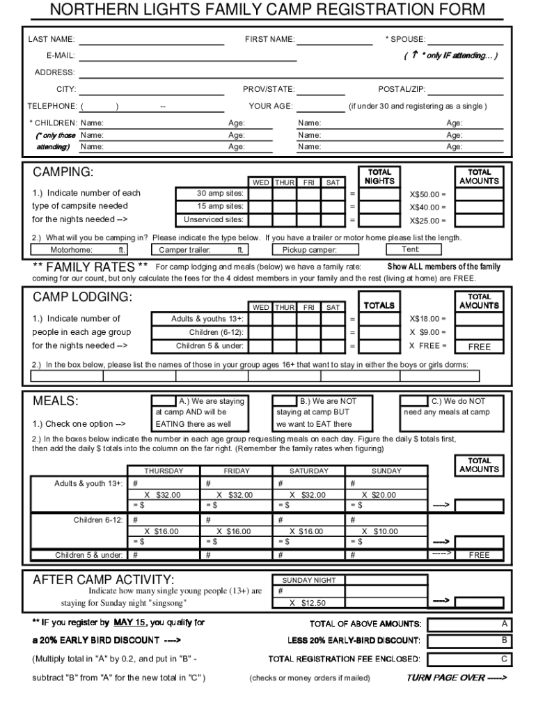 NORTHERN LIGHTS FAMILY CAMP REGISTRATION FORM