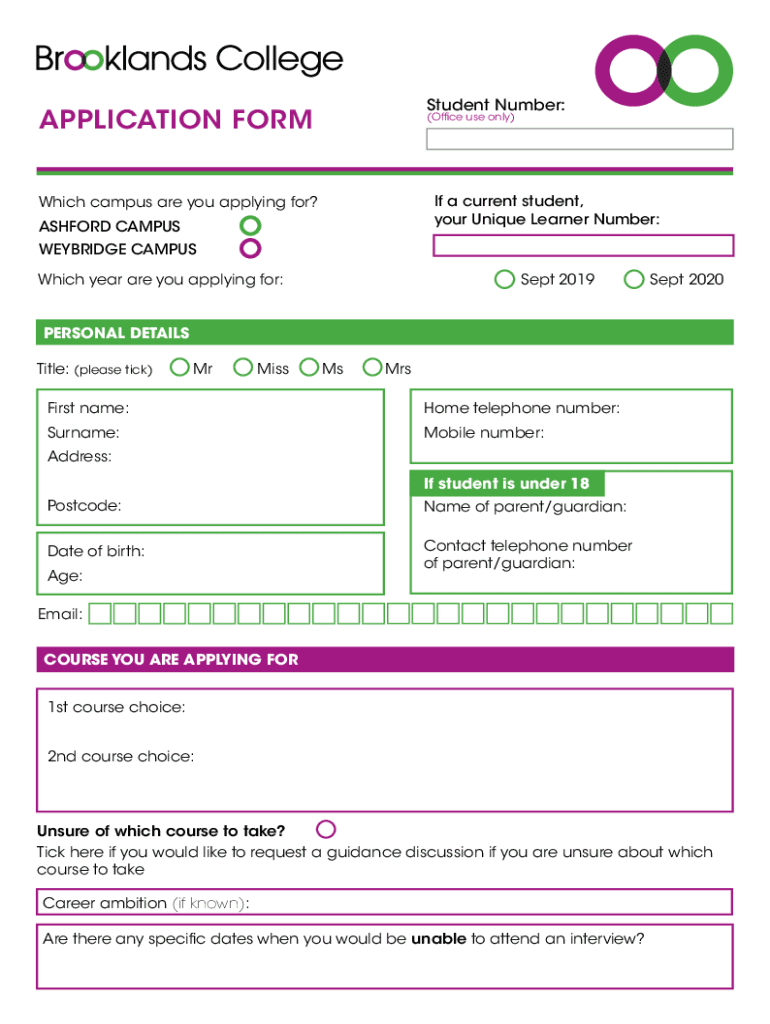 Get the free Student Number: APPLICATION FORM - Brooklands College