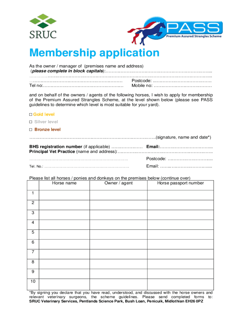 Membership application As the owner / manager of (premises name and address) (please complete in block capitals):... ... Postcode: .... Tel no: Mobile no: