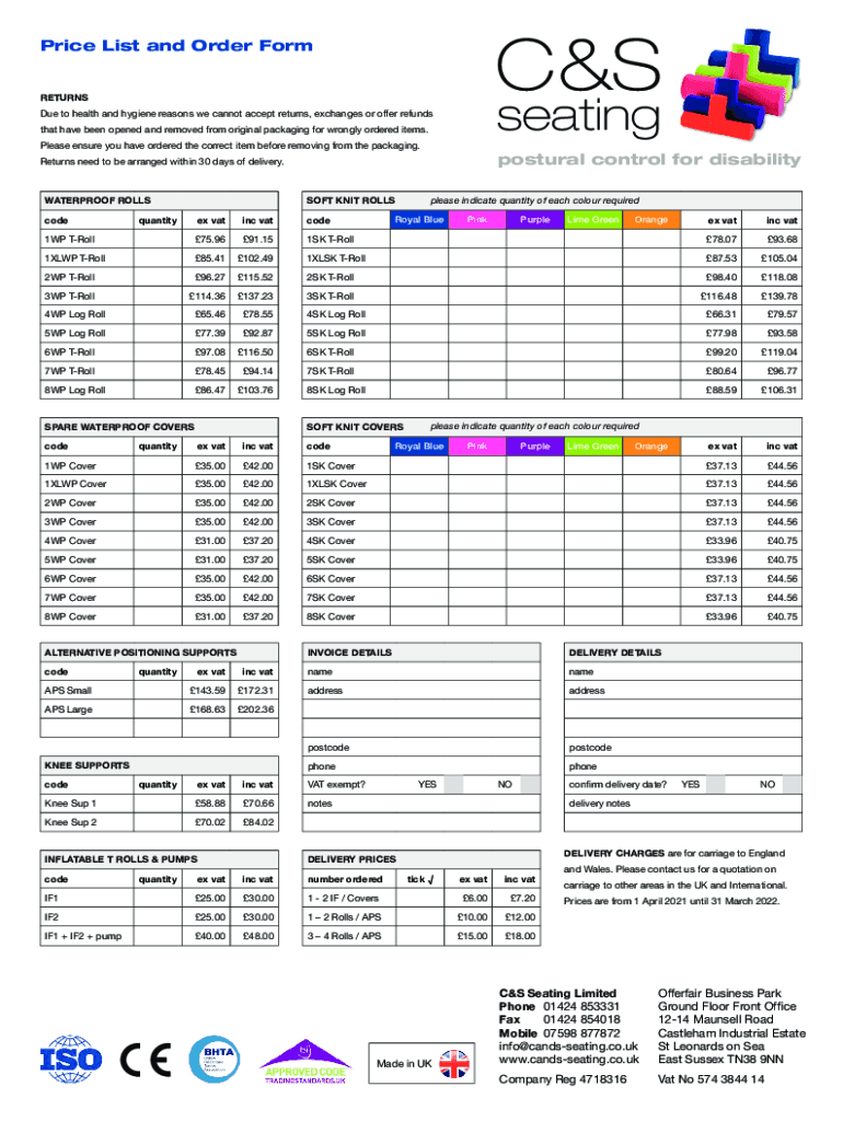 Caprice List and Order FormseatingRETURNS Due to health and hygiene reasons we cannot accept returns, exchanges or offer refunds that have been opened and removed from original packaging for wrongly