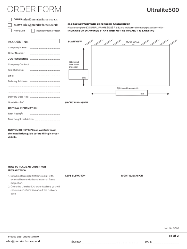 ORDER FORMUltralite500ORDER sales premier frames.co.UK e: roof sales ultraframe.co.UK SALES PRREMIERFRAMES.CO.SALES PREMIERFRAMES.CO.UK QUOTE sales premier frames.co.UK e: quotes ultraframe.co.UK