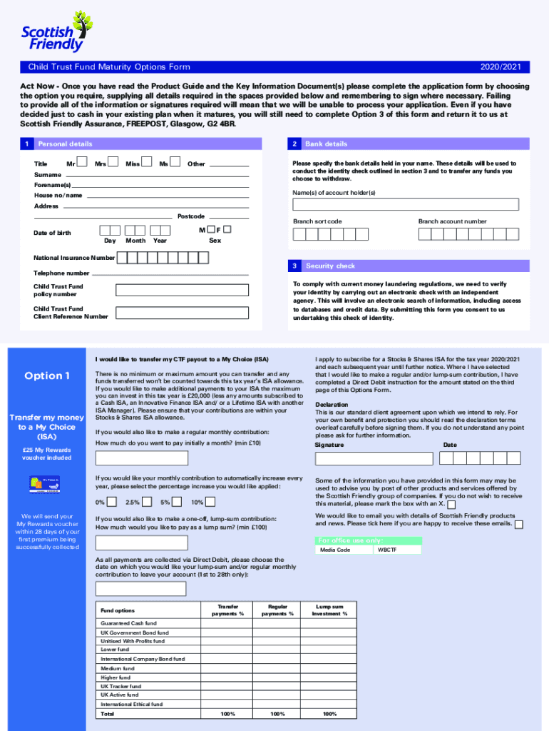 Child Trust Fund Maturity Options Form2020/2021Act Now Once you have read the Product Guide and the Key Information Document(s) please complete the application form by choosing the option you require,