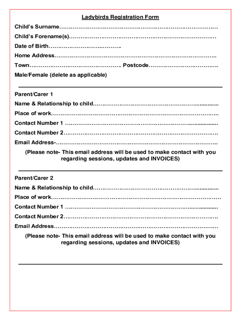 Ladybirds registration form childs is a form used to register children for ladybirds program.