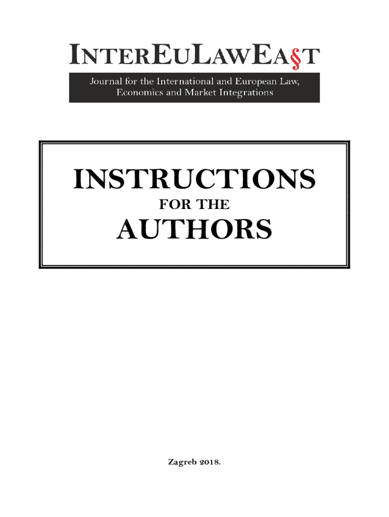 INSTRUCTIONS FOR THEAUTHORSZagreb 2018. I. INTRODUCTION INTEREULAWEAST Journal for International and European Law, Economics and Market Integrations (hereinafter: the Journal) is a scientific journal