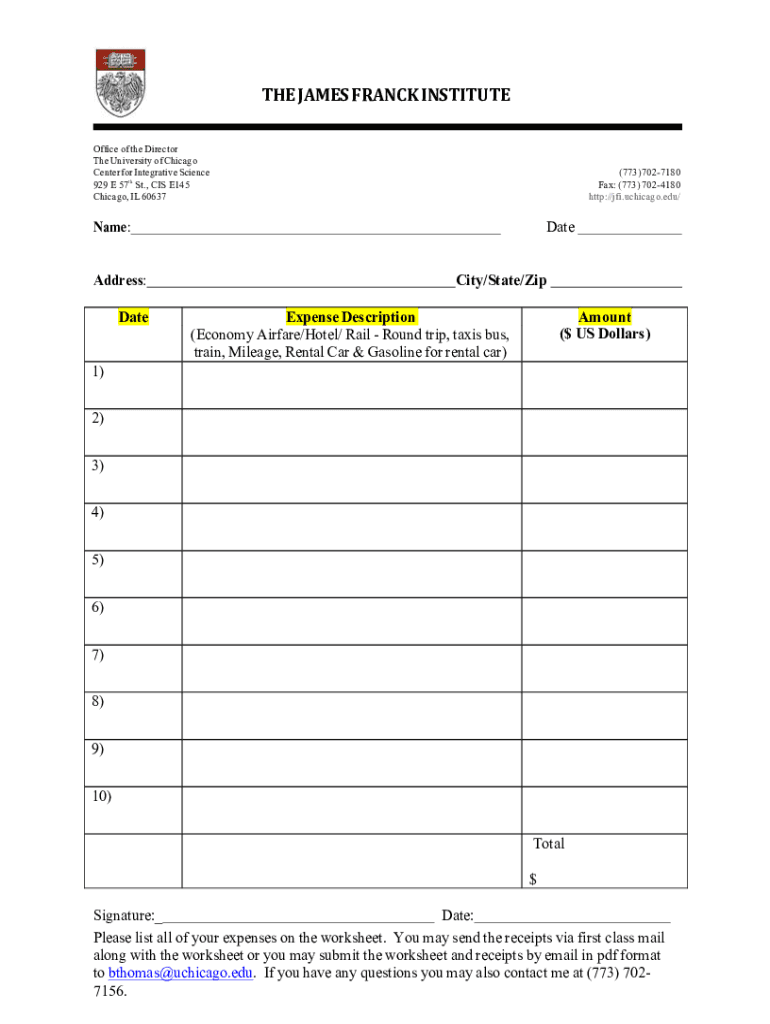THEJAMESFRANCKINSTITUTE Office of the Director The University of Chicago Center for Integrative Science 929 E 57th St., CIS E145 Chicago, IL 60637(773) 7027180 Fax: (773) 7024180 http://jfi.uchicago.edu/Name:DateAddress:
