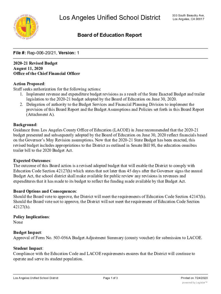 Los Angeles, CA 90017Board of Education Report