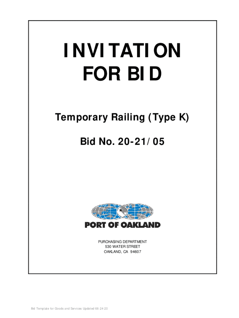 OAKLAND, CA 94607Bid Template for Goods and Services Updated 662420INVITATION FOR BID No.: 2021/05