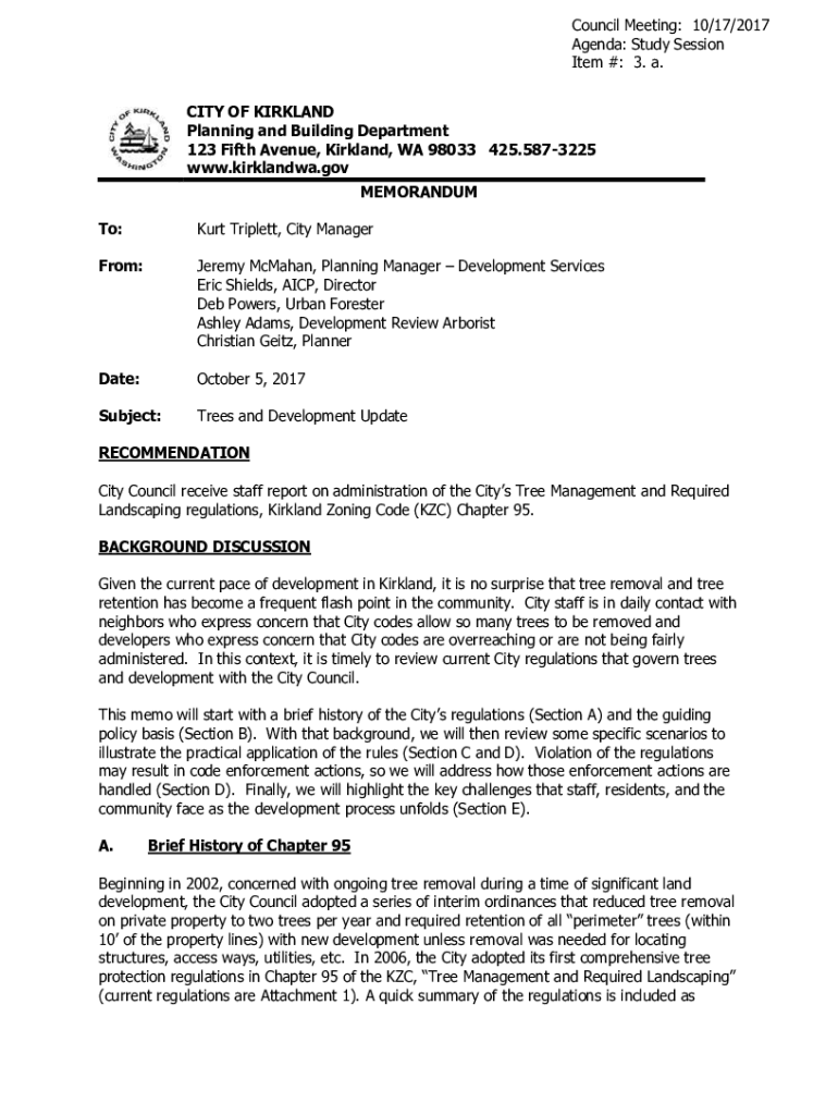 Council Meeting: 10/17/2017 Agenda: Study Session Item #: 3. a.CITY OF KIRKLAND Planning and Building Department 123 Fifth Avenue, Kirkland, WA 98033 425.5873225 www.kirklandwa.gov MEMORANDUM To:Kurt
