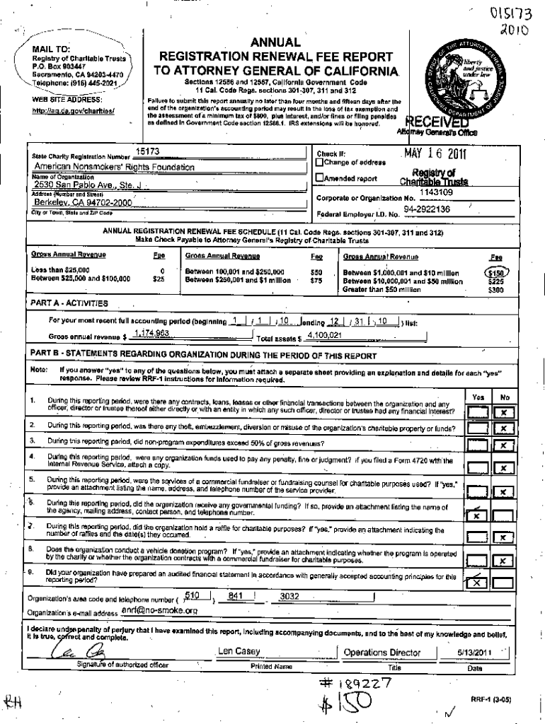Oisn3 ANNUAL REGISTRATION RENEWAL FEE REPORT TO ATTORNEY GENERAL OF CALIFORNIAMAIL TO: Registry of Charitable Trusts P.O. Box 903447 Sacramento, CA 942034470 Telephone: (916) 4452021Sections 12586