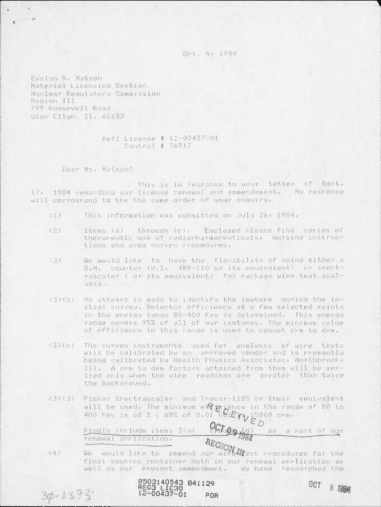 Get the free Submits addl info re renewal of License 12-00437-01,per 840917 request.