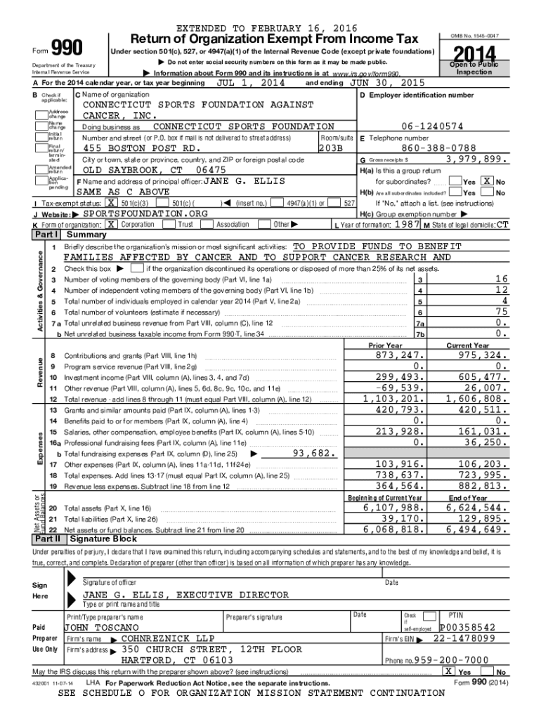 EXTENDED TO FEBRUARY 16, 2016 Form990Return of Organization Exempt From Income Tax OMB No. 15450047 Do not enter social security numbers on this form as it may be made public. Open to Public Inspection2014Under