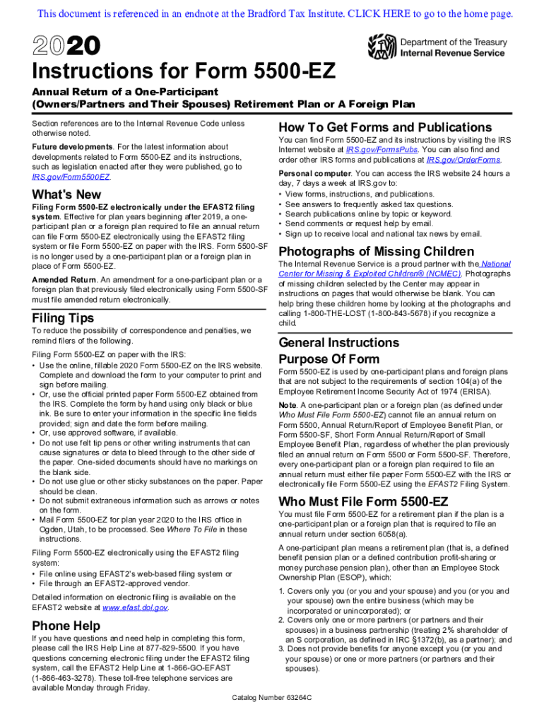 This document is referenced in an end note at the Bradford Tax Institute. CLICK HERE to go to the home page.2020Instructions for Form 5500EZ