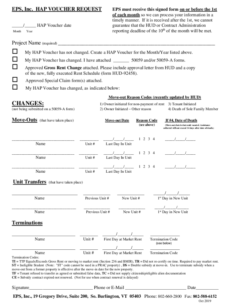 Get the free HAP VOUCHER REQUEST - EPS, Inc.