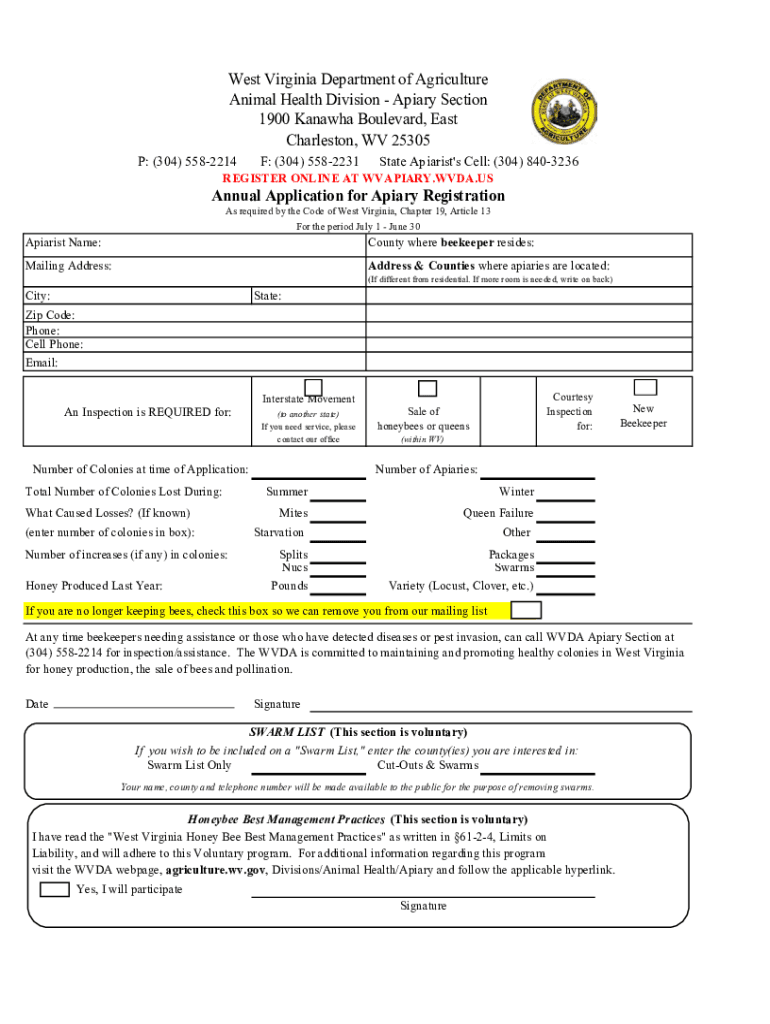 Get the free Annual Application for Apiary Registration
